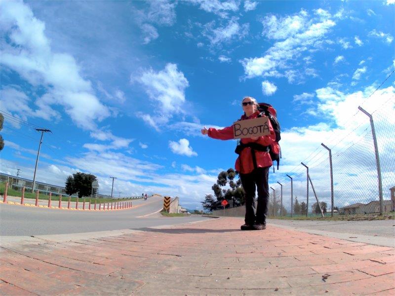 In the picture is the moment of my last hitch before leaving South America in December 2017. I was hitchhiking from Medellín to Bogotá and I was only 32 kilometers from my destination. A family with father, mother, and a little girl picked me up, and we drove into the city. I mostly chatted with the little girl, who fixated on my hitchhiking sign. Her name was Esmeralda, and with the permission of her parents, I spoke a bit about traveling, meeting people, and seeing places. I’m not sure if anything stuck, but I let her keep my hitchhiking sign. Maybe she will one day find the courage and confidence to go to wherever she desires to be.